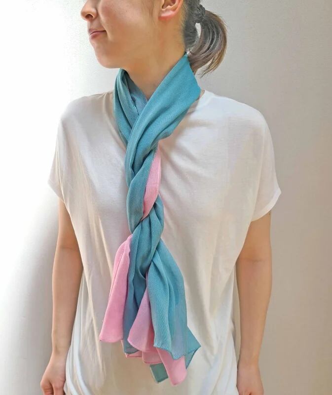 「和布(なごみぬの)」は、肌の弱い方や小さなお子様にも安心して使ってもらえるようにと「竹布ベビーソフト」と同じガーゼ生地で作られています。大きさは約44×130cmとほどよい長さと幅で、色の組み合わせや巻き方などシーンやスタイルにあわせて色々なコーディネートが楽しめます。
