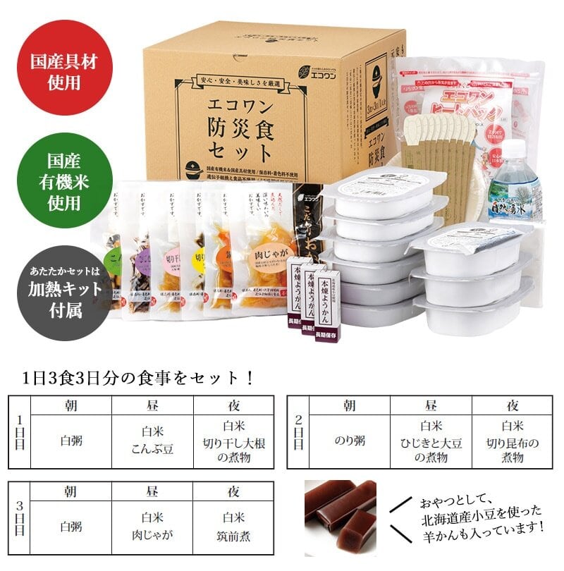 「備蓄用の非常食が欲しいけど添加物が心配……」そんな声から生まれたのが、『エコワン防災食セット』です。